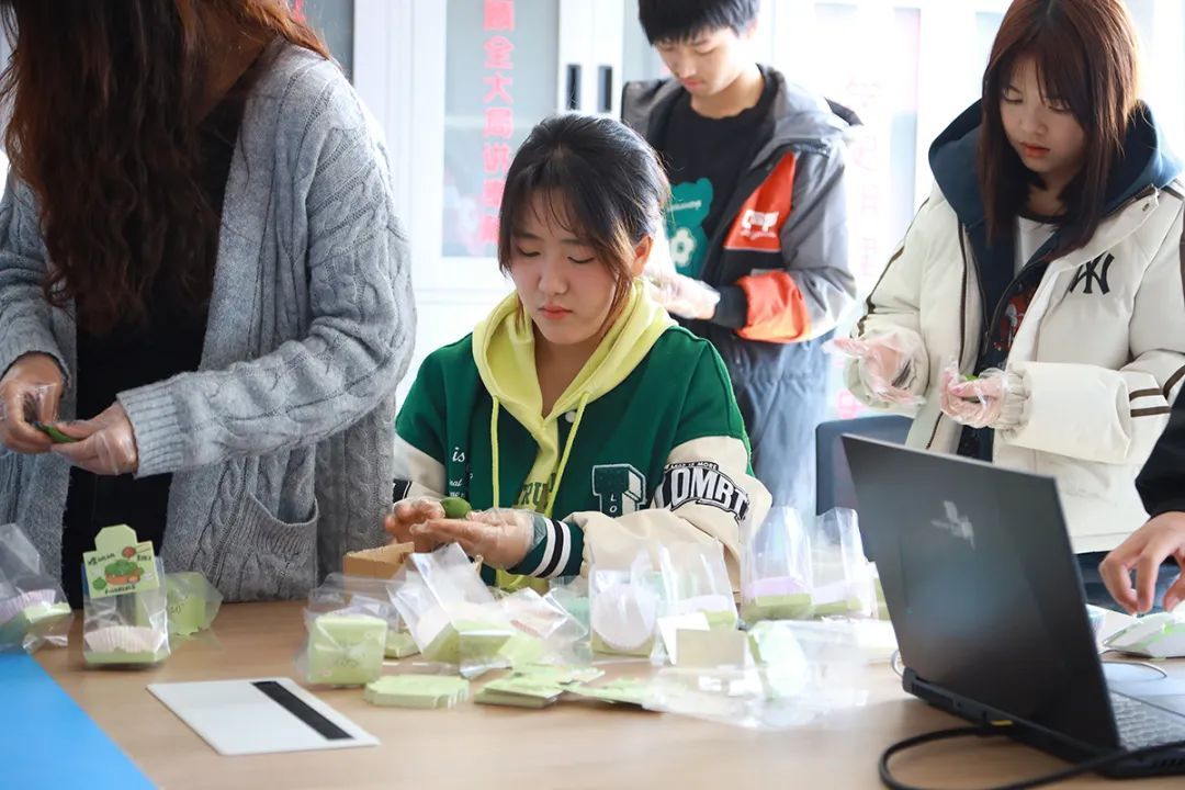 活动现场,青团制作区格外热闹。同学们学着包青团,虽然手法不太熟练,包出来的青团形状各异,但与同学们相互分享,吃着自己亲手做的青团,每个人脸上都洋溢着满足的笑容。