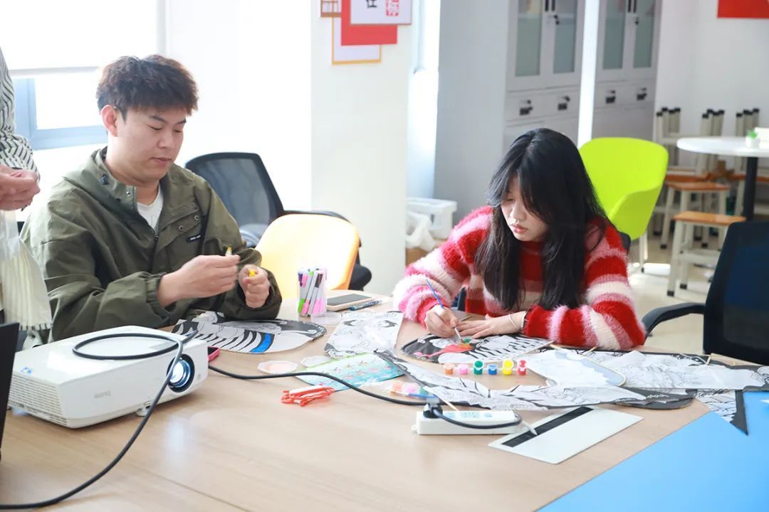 风筝制作区,大家拿着画笔认真上色,你一言我一语,有的画涂色纸鸢的,有的画美丽风景的,把风筝涂得五颜六色。做好后,大家迫不及待地到操场放风筝,灿烂的阳光洒在风筝与同学身上,格外的耀眼,青春的气息伴随风儿在泉海飘过。