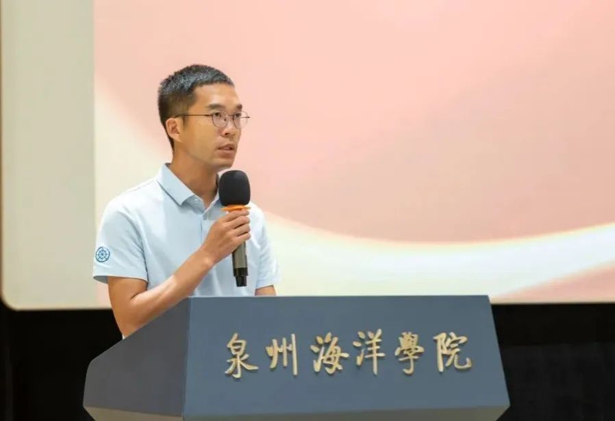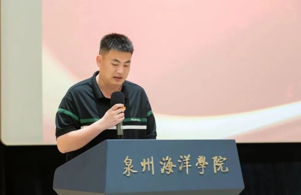 肖伟强上台讲话。他充分肯定了海洋工程学院团委过去一年取得的工作成果,同时对新团员寄予殷切期望。他指出,过去一年在党支部的引领下,思想建设与组织建设深度融合,实践育人取得显著成效,志愿服务工作尤为突出。此外,他还强调,面对新时代的机遇与挑战,要积极创新工作方式,以更饱满的热情、更坚定的步伐迎接新挑战,推动团学工作迈向新高度。
