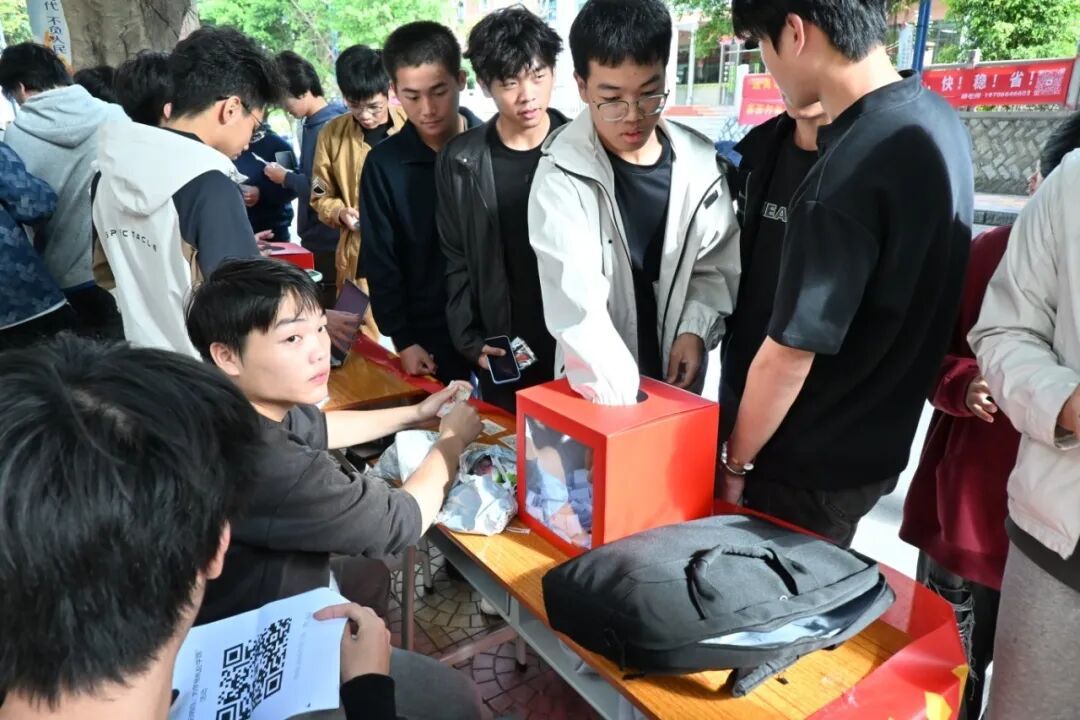 活动现场氛围热烈非凡。“资助政策盲盒”区域前,工作人员早已备好装满助学金申请条件、助学贷款办理流程等问题的盲盒,同学们有序排队抽取作答。答对者可即刻领取精美小礼品;答错或有疑问时,工作人员会耐心拆解政策要点,让大家在轻松互动中牢牢掌握资助知识。