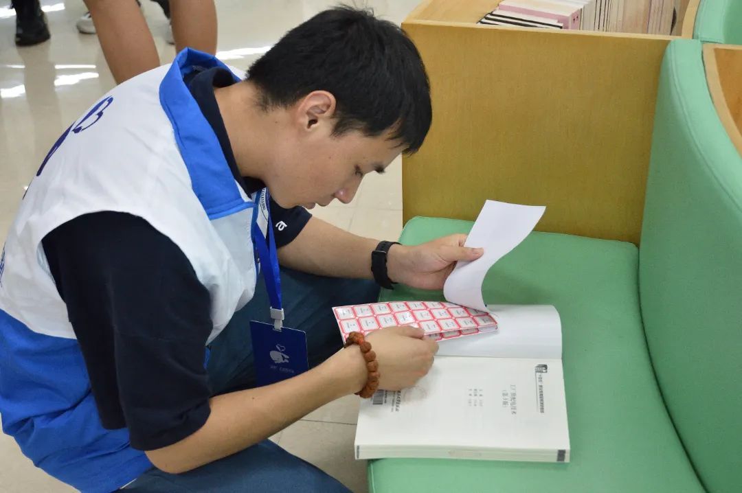 在图书馆工作人员的带领下,志愿者们对图书馆藏书进行了全面的清点与整理。他们认真检查每一本图书,在清理老旧图书的同时还对损坏的图书进行了修复。随后,志愿者们对每一本图书进行精确的登记和分类,并细心地贴好标签。
