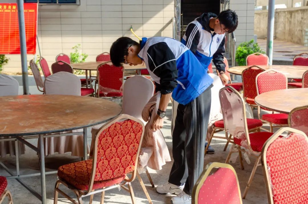活动期间,志愿者们早早地来到了活动现场,在居委会的统筹安排下,志愿者们团结协作,精心摆放桌椅,为即将到来的宴会做好准备。经过几个小时的辛勤工作,原本空旷的场地已经变成了一个温馨而有序的宴会现场。桌椅摆放得井井有条,餐桌上摆满了各式各样的美食,空气中弥漫着诱人的香气。村里老年居民陆续到来,他们的脸上都露出了满意的笑容,对志愿者们的辛勤工作表示由衷的感谢。