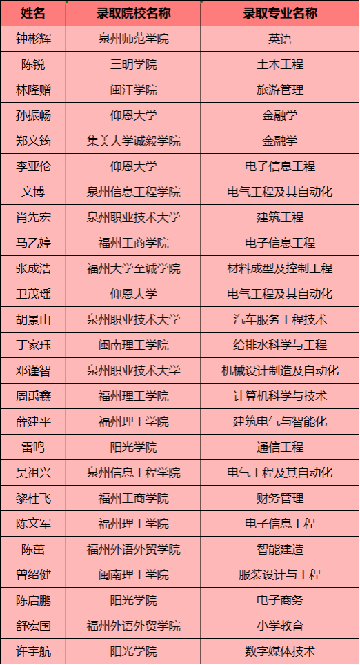 根据福建省教育考试院发布的2024年专升本招生考试情况,我院共有25名学生成功上岸!专升本考试优异成绩的取得,既是学院学子奋勇拼搏,更是学校严格的教学教风。