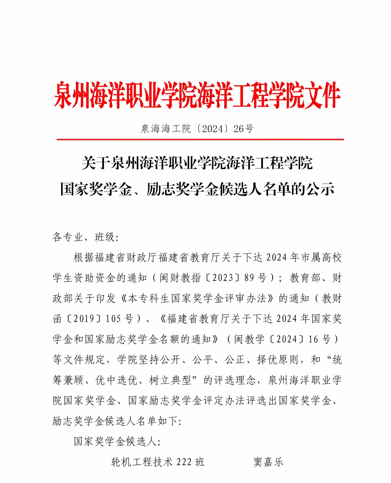 下一篇:关于泉州海洋职业学院海洋工程学院国家奖学金、励志奖学金评定办法的通知