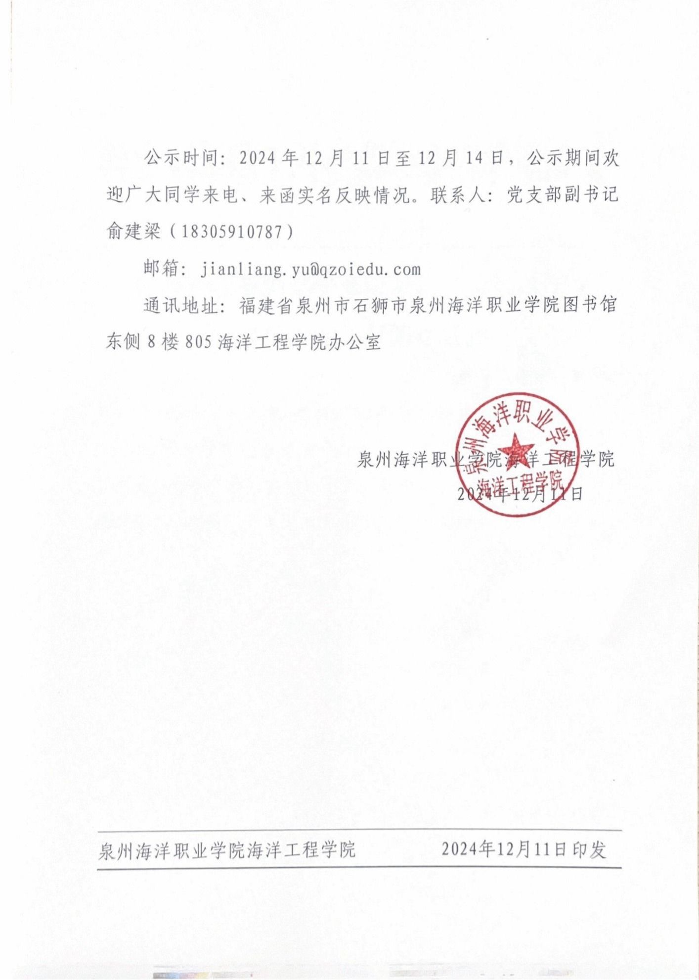 地址:福建省石狮市祥芝镇古浮二十区1号 邮编:362700招生热线 (0595)83858888 电话:(0595)88983105 传真:(0595)83015559Copyright © 2016-2023 泉州海洋职业学院 版权所有 闽ICP备09021863号-1 闽公网安备 35058102000172号