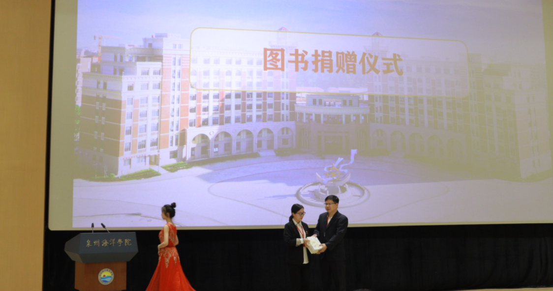 资助中心邱玉华主任代表泉州师范学院毛佳佳博士向图书馆赠书,林昭勇老师代表图书馆接受赠书。