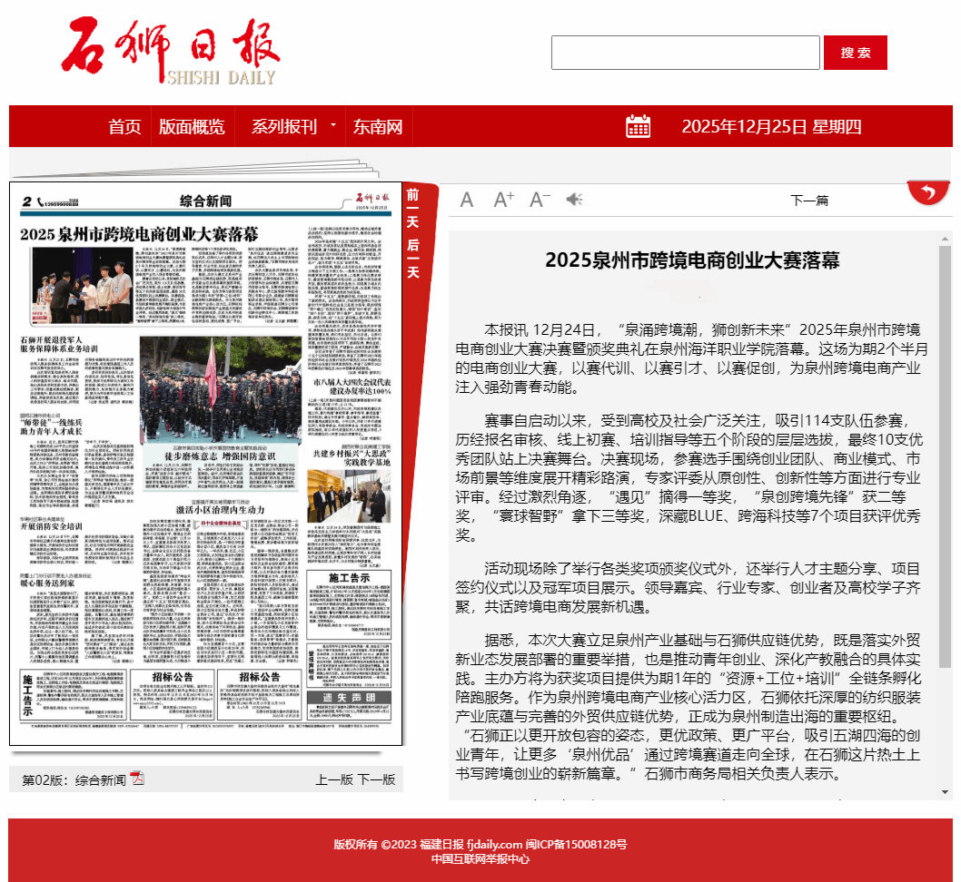 【石狮日报】2025泉州市跨境电商创业大赛落幕