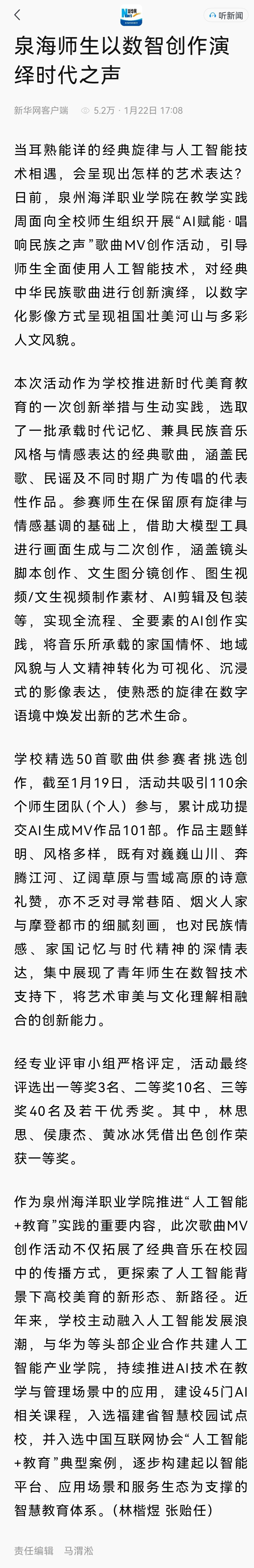 【新华网】泉海师生以数智创作演绎时代之声