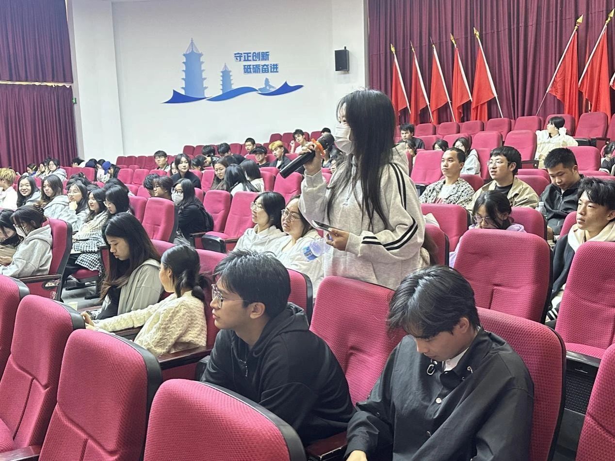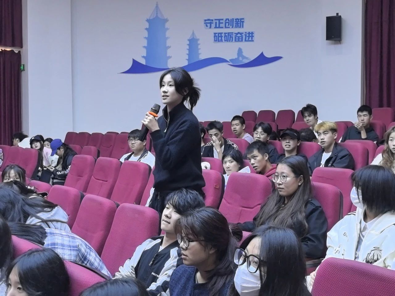 在交流互动环节,同学们积极踊跃提问,现场气氛热烈。大家就比赛的相关问题、产品的特点以及新媒体创新的方向等展开了深入探讨。