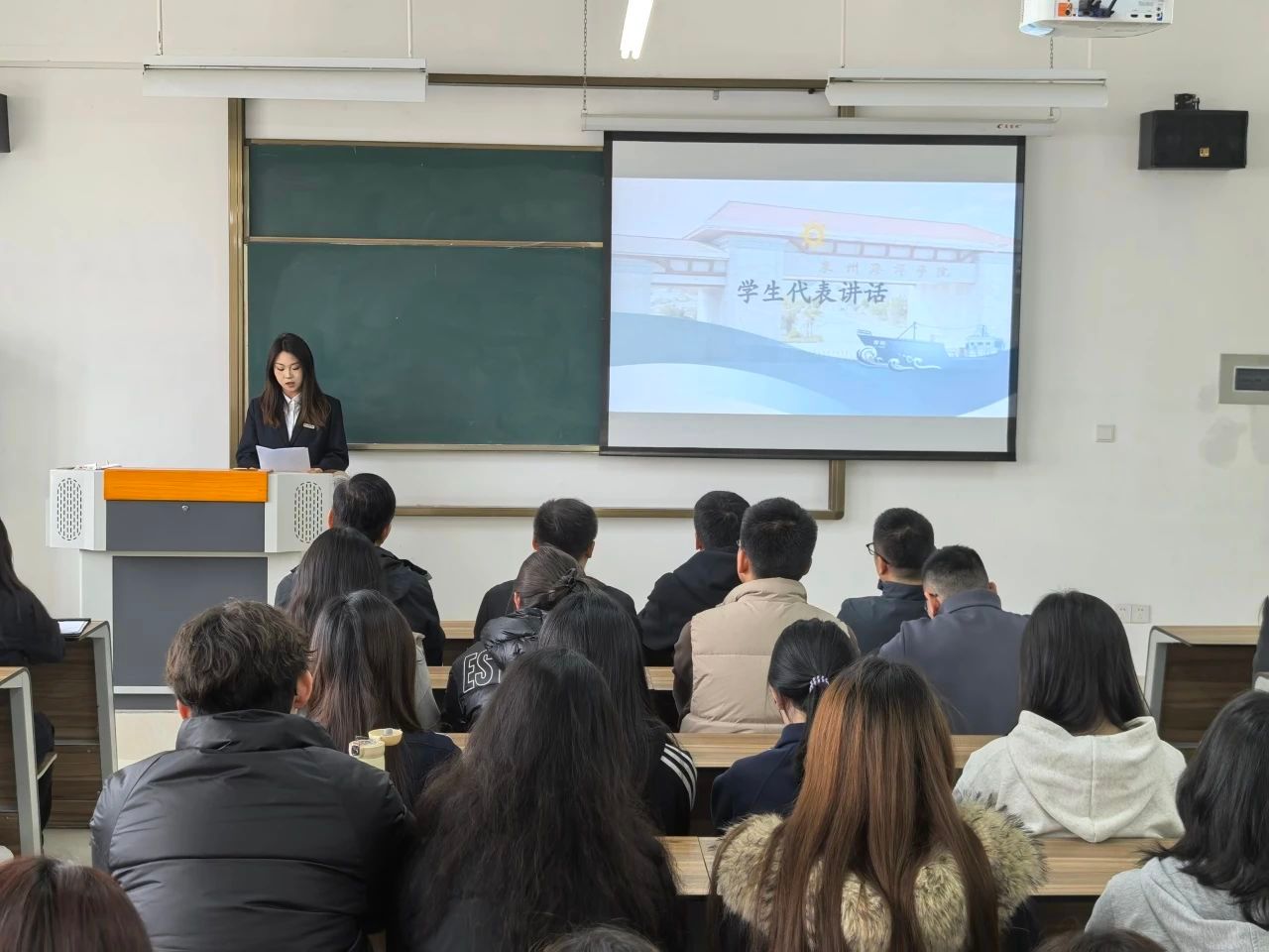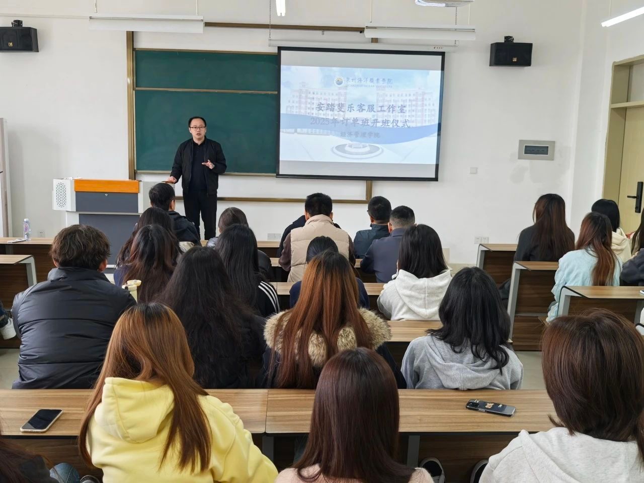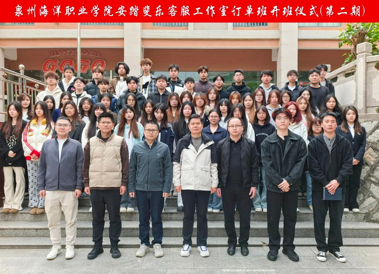 为了进一步深化产教融合,加强校企合作,培养适应市场需求的高素质应用型人才,近日,泉州海洋职业学院安踏斐乐客服工作室订单班开班仪式在3号教学楼3507举行。对外合作处副处长蒋滨滨、校企合作中心主任郑勇辉、安踏斐乐企业代表郑家豪、院长张恒中、党支部书记林钊、副院长张纪华、副院长张泰祯等领导出席了本次开班仪式,全体订单班的师生代表也共同参与其中。