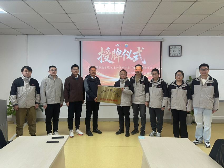 当日下午,走访团队走进宏兴汽车皮革有限公司,实地参观生产车间与智能化产线,随后与企业管理层就岗位需求、人才培养标准等内容座谈交流。授牌仪式上,企业代表承诺将为学生提供优质实践平台,携手培养适配产业升级需求的技术技能人才。张恒中院长强调,此次挂牌不仅是校企合作的全新起点,更是双方共育“留得住、用得上、干得好”应用型人才的重要契机。