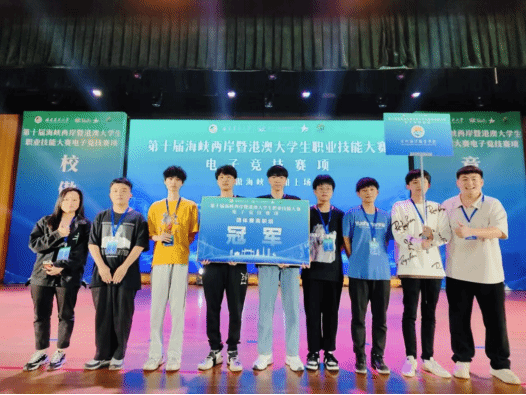 近日,第十届海峡两岸暨港澳大学生职业技能大赛电子竞技赛项在福州举办,共有来自海峡两岸暨港澳地区的25所高校200余名选手参加。我院肖伟强老师与信息工程学院吕婷婷老师带领夏田辉、占宇淼、陈文俊、江俊杰、陈彦涛、谢荣煜、王永鹏7名学校电竞社同学参赛,荣获电子竞技技能竞赛团体一等奖,陈彦涛同学获得电子竞技员竞赛金牌!