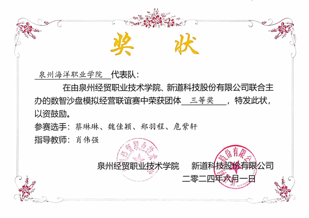 近期,由泉州经贸职业技术学院、新道科技股份有限公司联合主办的福建省数智沙盘模拟经营联谊赛成功举办,来自省内高职院校25支参赛队参加了此次比赛。