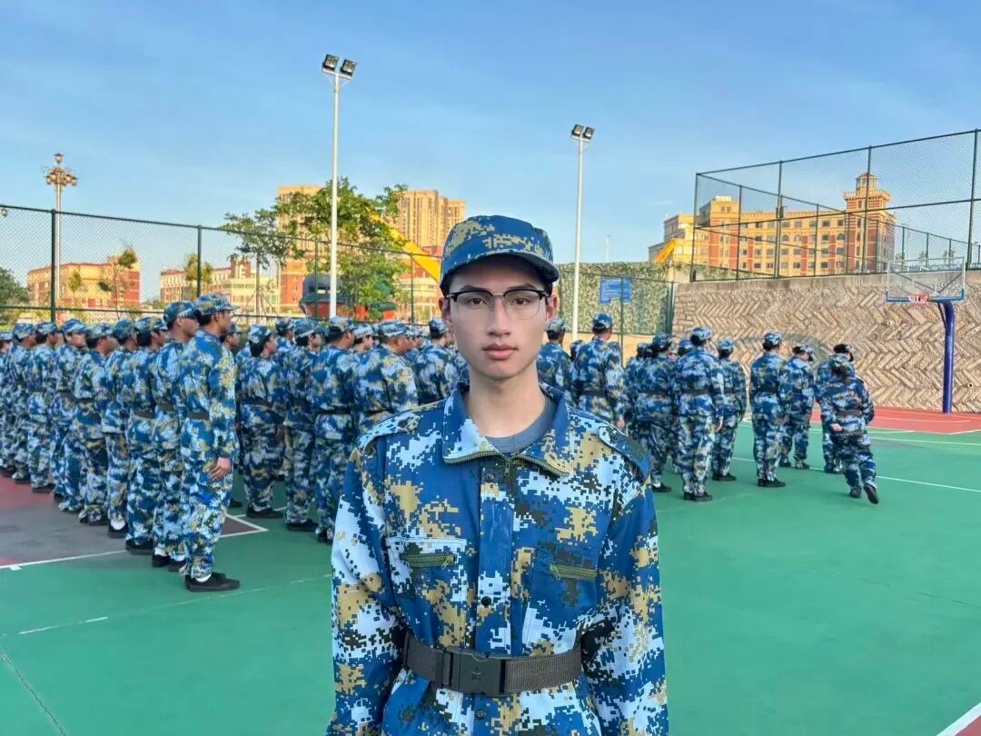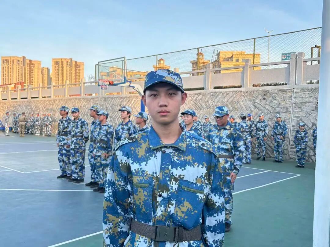 网营2501班陈圣栩:在军训中“坚持”不是硬扛,而是一步一步做好当下的事,比如把每一次军姿都站标准,把正步踢好。