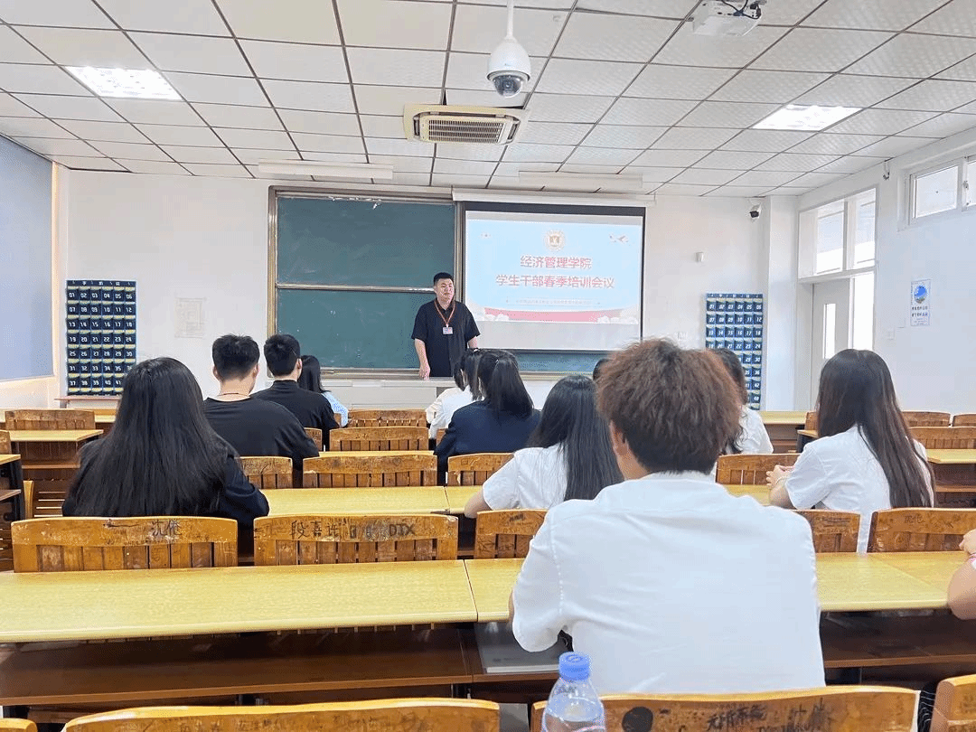 经济管理学院团委召开了经济管理学院学生组织春季培训会议,会议由肖伟强主持,会上深入学习了《习近平总书记关于青少年学生成长的重要要求》摘编,专题学习《关于巩固高校学生会(研究生会)改革成果的若干措施》文件精神,学习“学生会改革进行时”系列述评文章。明确学生组织要完善领导体制,完善运行机制,学生干部要恪守学生本分,胸怀崇高理想,敢于担当,明确自身定位,牢记服务宗旨,以更高的标准要求自己,守纪律、讲原则、作表率,共同维护富有理想、关心同学、清新阳光的组织形象。