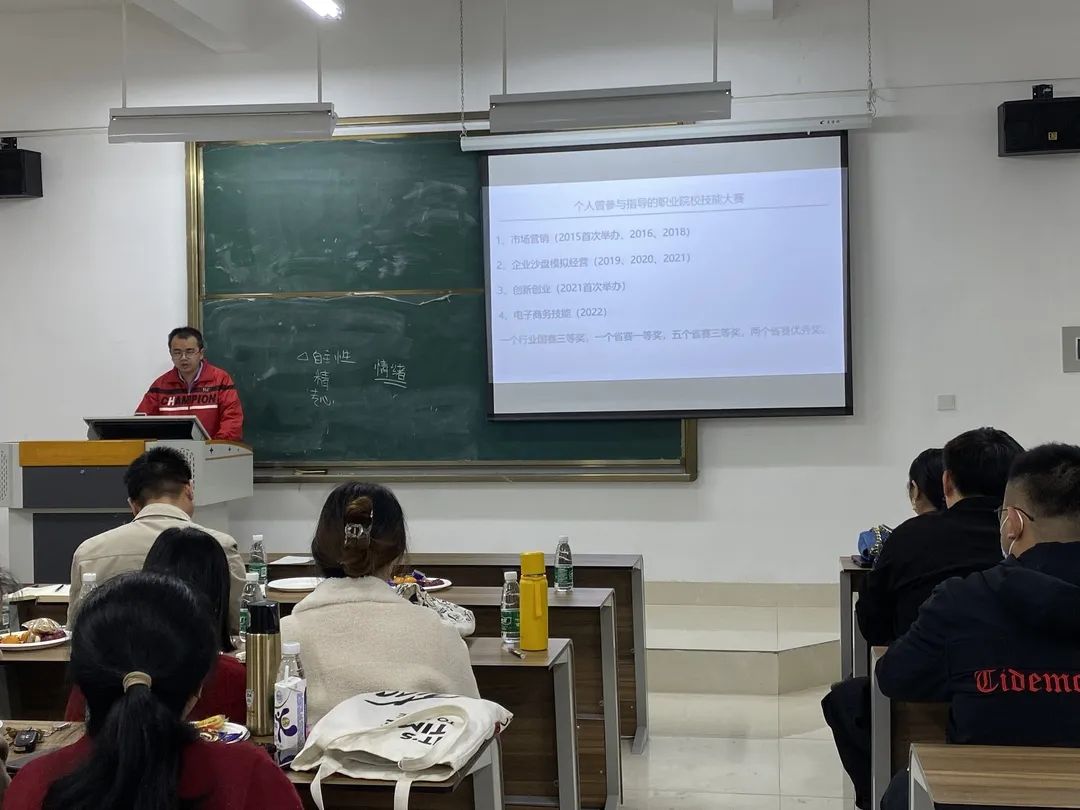 杨雄副校长提到:1、充分肯定经济管理学院师生近一年来在职业技能竞赛方面取得的成绩,2、强调职业技能竞赛对于教师成长的作用,对于学生成长的作用,鼓励老师们积极参加各项职业技能大赛,对于竞赛中存在的问题积极沟通,克服困难,努力训练,争创佳绩;3、充分肯定经管学院在校企合作方面的成绩。