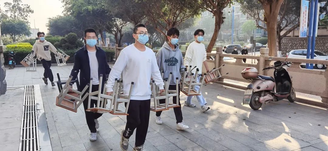 在确保安全的前提下,大力弘扬“奉献、友爱、互助、进步”的志愿精神,加入防疫青年志愿者队伍,经济管理学院积极投身于学校核酸志愿活动,为此次核酸检测行动搬运所需使用的桌椅,为疫情防控奉献一份力量!