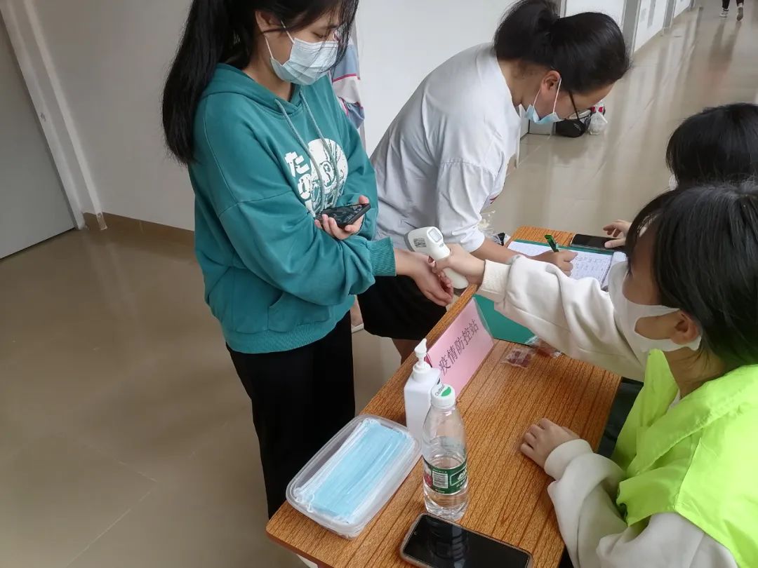 按照学校要求,我院对疫情防控工作进行再安排、再部署,对入宿舍人员采取“三码联查”、测温、戴口罩等防控措施。