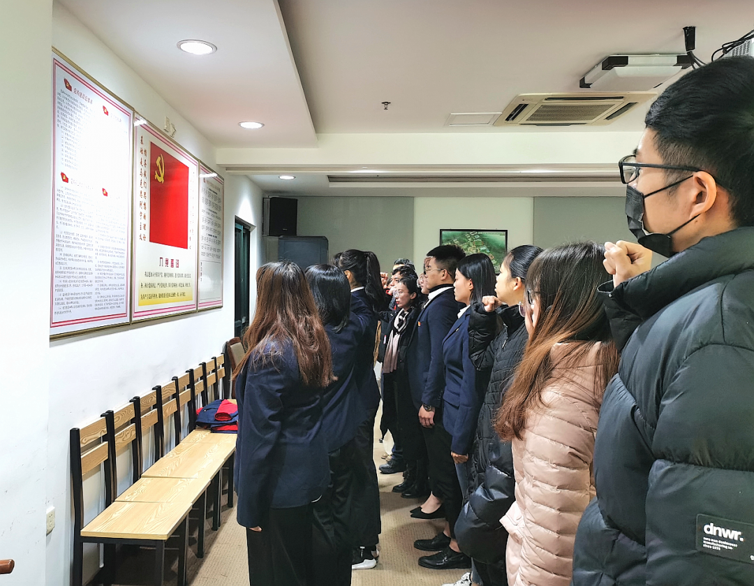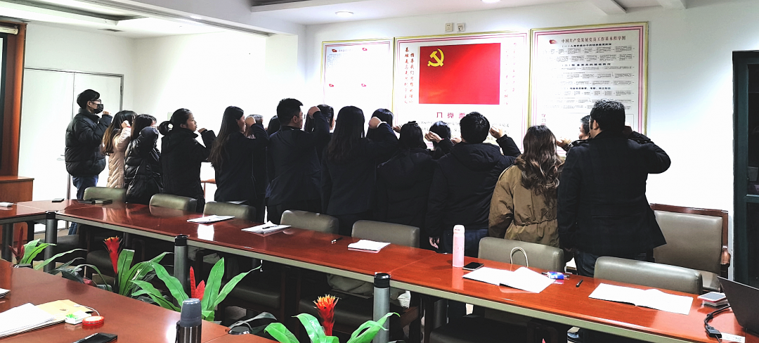 在杨雄书记的带领下,大家面向党旗,新党员入党宣誓,老党员重温入党誓词。