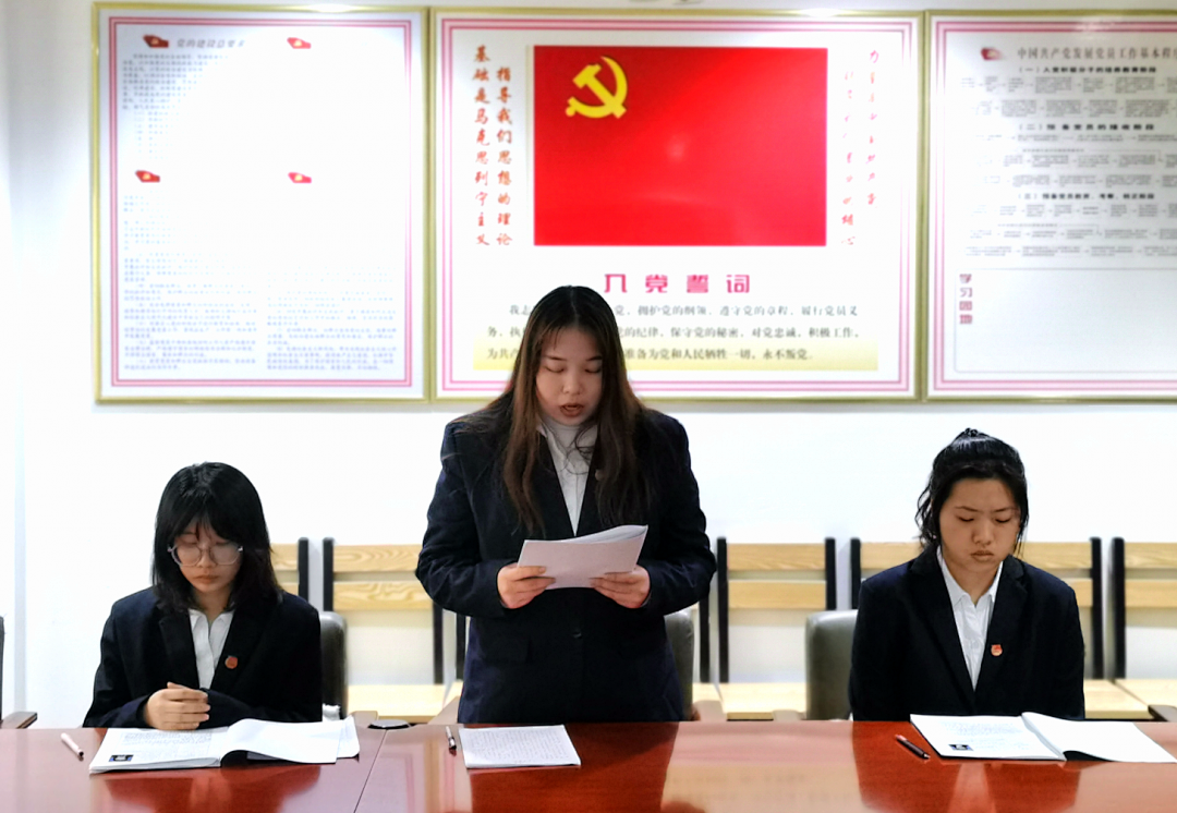 6名发展对象分别宣读《入党志愿书》,汇报自己对党的认识、入党动机、本人履历及向党组织说明的问题。