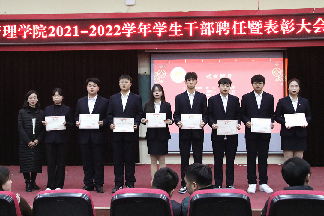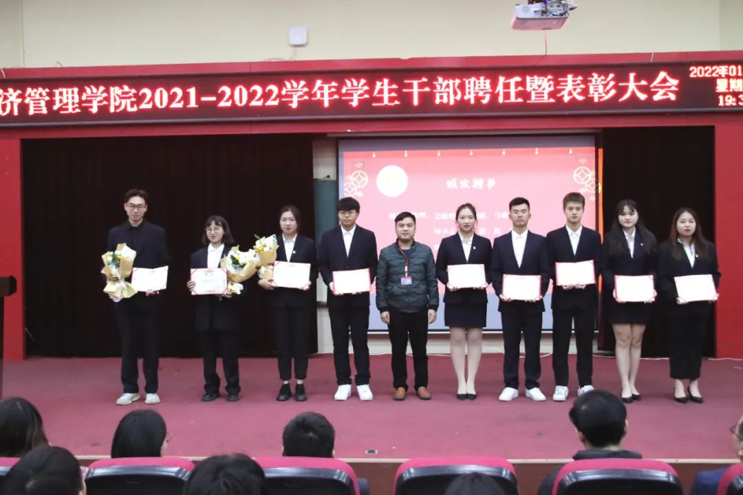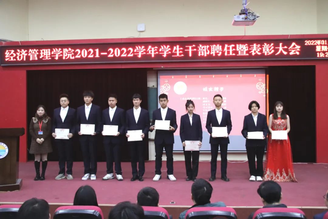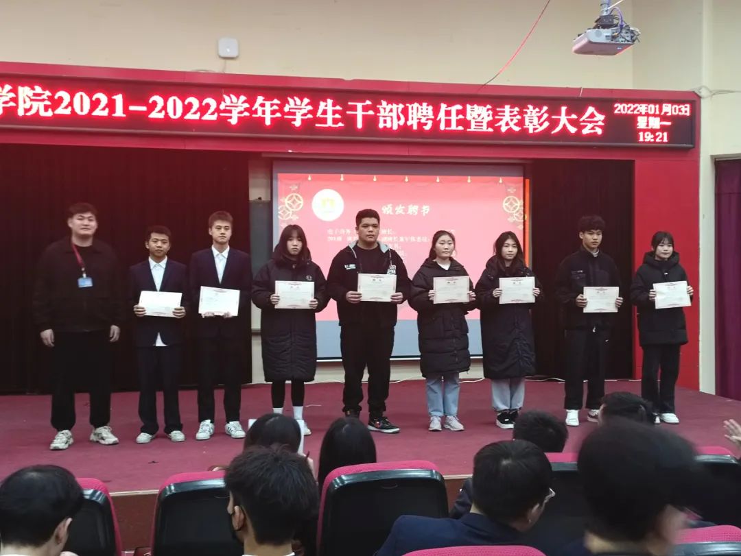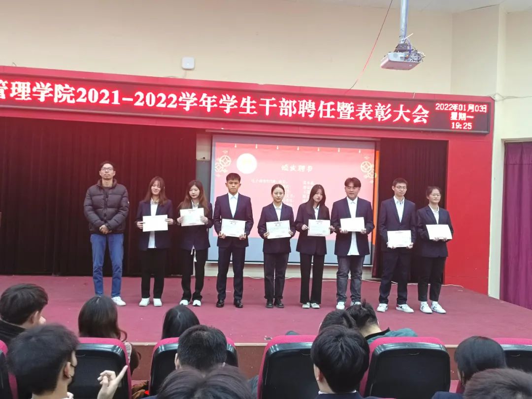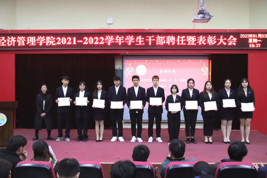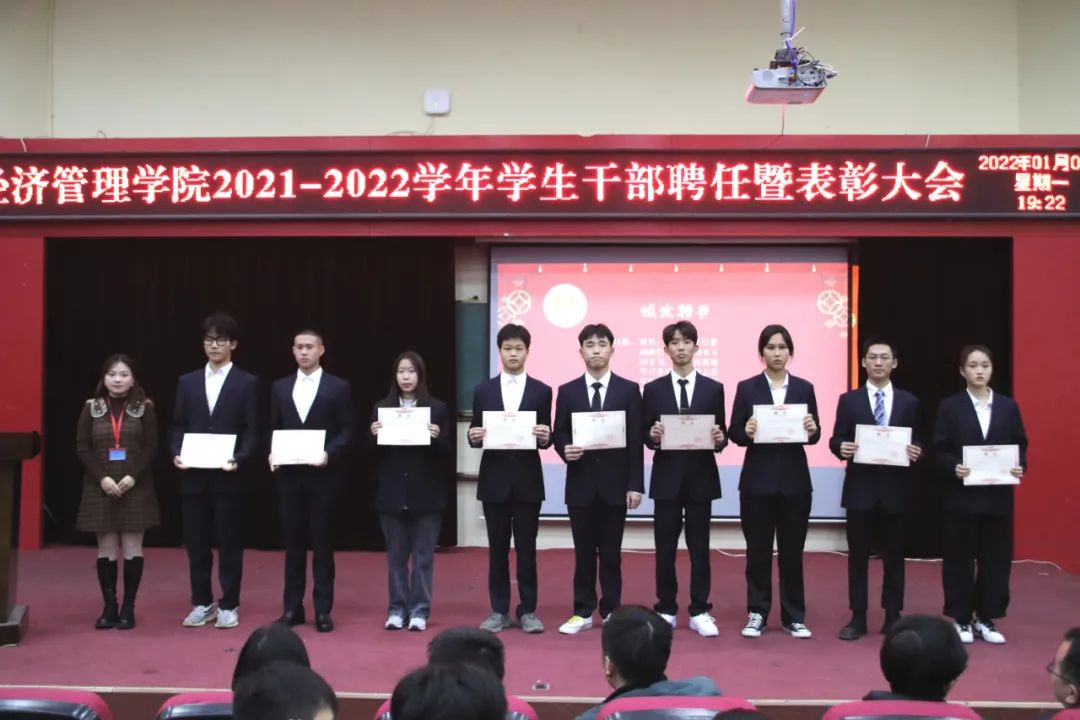 2022年1月3日晚,泉州海洋职业学院经济管理学院2021-2022年第一学期学生干部聘任暨表彰大会在2204教室顺利举行。