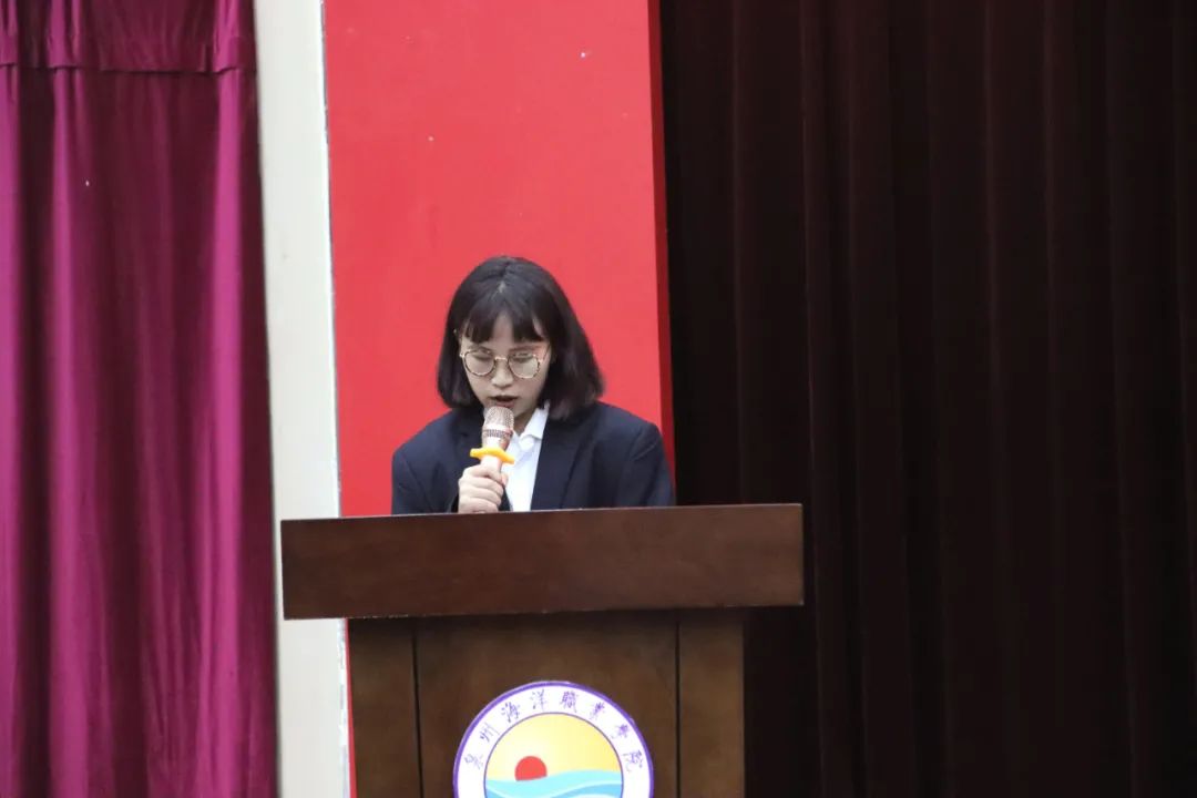 本次大会由经济管学院团委副书记张倩主持,出席本次大会的领导和老师有:泉州海洋职业学院副校长、经济管理学院党支部书记杨雄教授;经济管理学院党支部陈合喜副书记;经济管理学院院长助理吴丽清老师;经济管理学院电子商务负责人黄金帅老师;经济管理学院团委负责人吴婷谊老师;经济管理学院辅导员吴钊淳老师;经济管理学院辅导员肖伟强老师。
