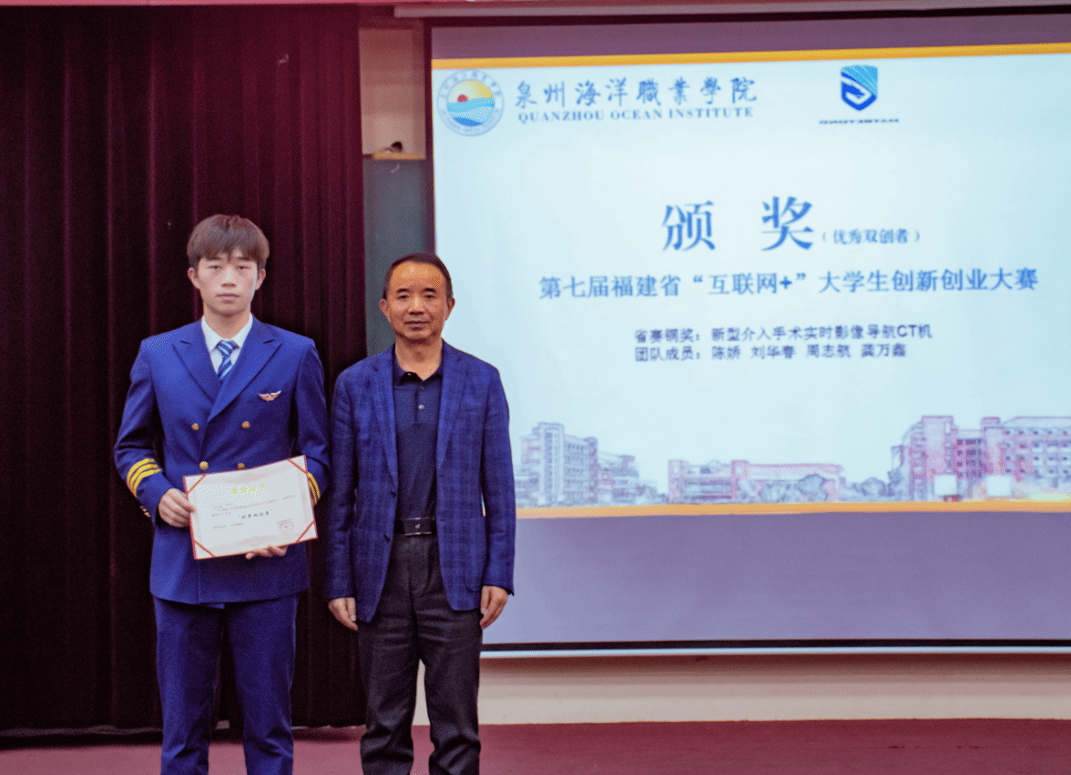 • 第五组:《新型介入手术实时影像导航CT机项目》获得第七届福建省“互联网+”大学生创新创业大赛省赛铜奖,团队成员被我校评为优秀双创者团队成员:陈娇、刘华春、周志航、龚万鑫