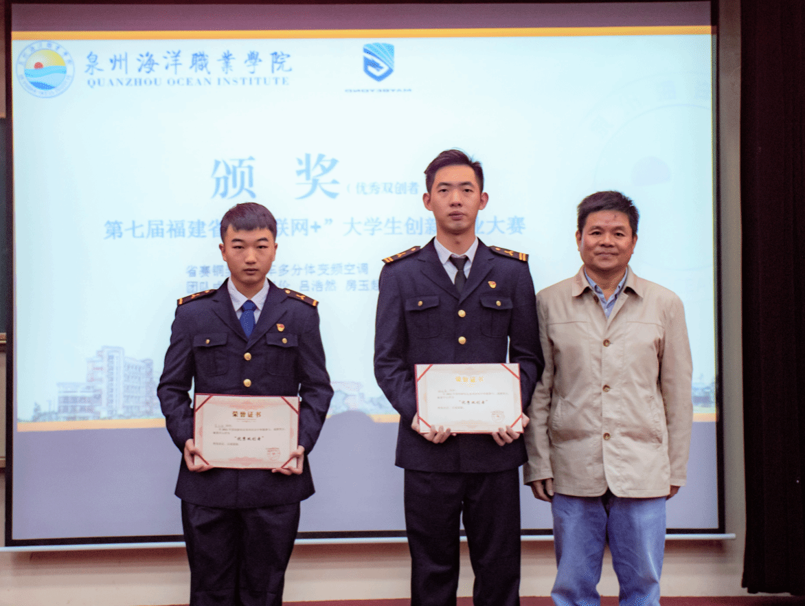 • 第四组:《房车多分体变频空调》项目获得第七届福建省“互联网+”大学生创新创业大赛省赛铜奖,团队成员被我校评为优秀双创者团队成员:董汉伦、吕浩然、房玉超、童永强、姚廷威
