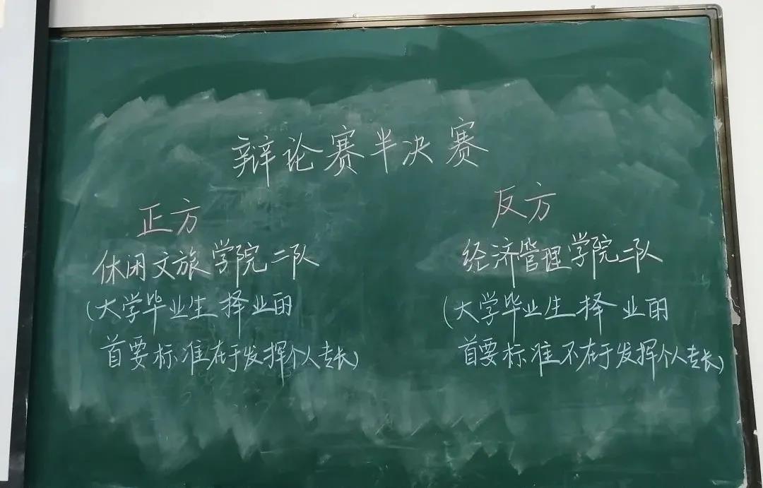 双方毫不相让,各执其词,始终围绕着"大学生择业的首要标准在于发挥个人专长还是不在于发挥个人专长”展开激烈辩论。最终经管学院代表队,成功步入决赛。
