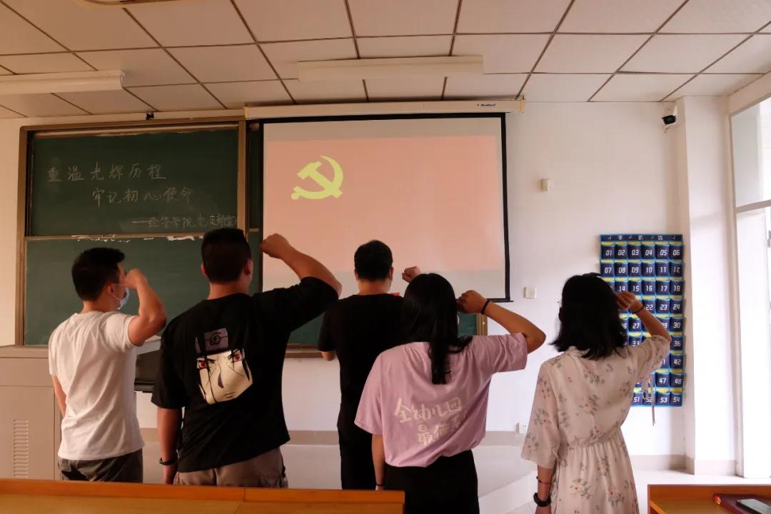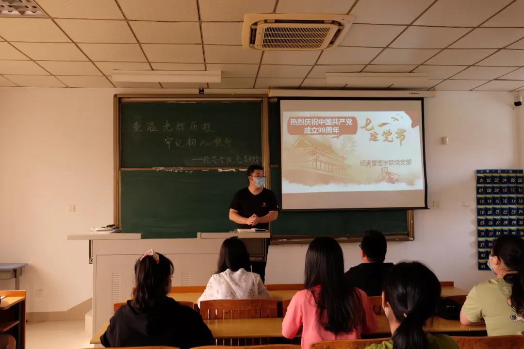 为庆祝中国共产党建党99周年,讴歌党的光辉历程,继承党的优良传统,增强党员意识,激励全体党员不忘初心、牢记使命,自觉用实际行动践行党的宗旨,凝心聚力做好工作,2020年7月1日下午,经济管理学院党支部在2203教室隆重召开以“重温光辉历程,牢记初心使命”为主题的党日活动,参加此次活动的有支部党员及学院十九批次党校培训班的同学,会议由吴志雄书记主持。