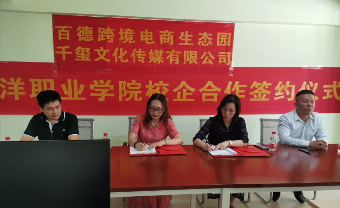 2020年7月22日,我院与百德跨境电商产业园、千禧文化传媒有限公司举行“互联网+商务校企合作”签约仪式和授牌仪式,洽谈电商创客校企合作项目。