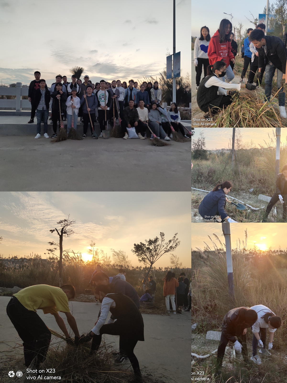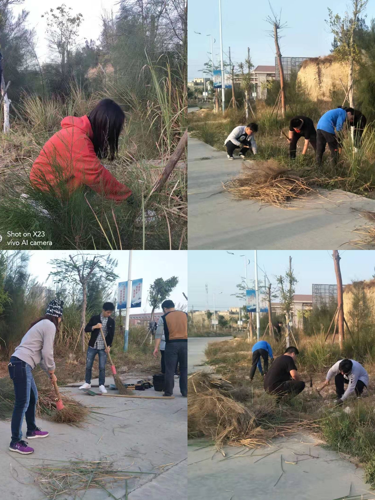 活动内容主要是清理校道杂草。大家或是用扫帚扫起来路边的杂草,或是用锄头把杂草锄掉;一个拿着锄头除草,另一个就帮忙收拾锄掉的杂草,大家在互帮互助中感受集体的力量。在阳光下同学们认真清扫,良好的精神风貌为凉爽的海风增添了一丝温暖。与此同时,其他班也在各自的卫生分工区域认真清扫。没过多久,整个校道焕然一新,清扫活动在洁净的校园中结束。