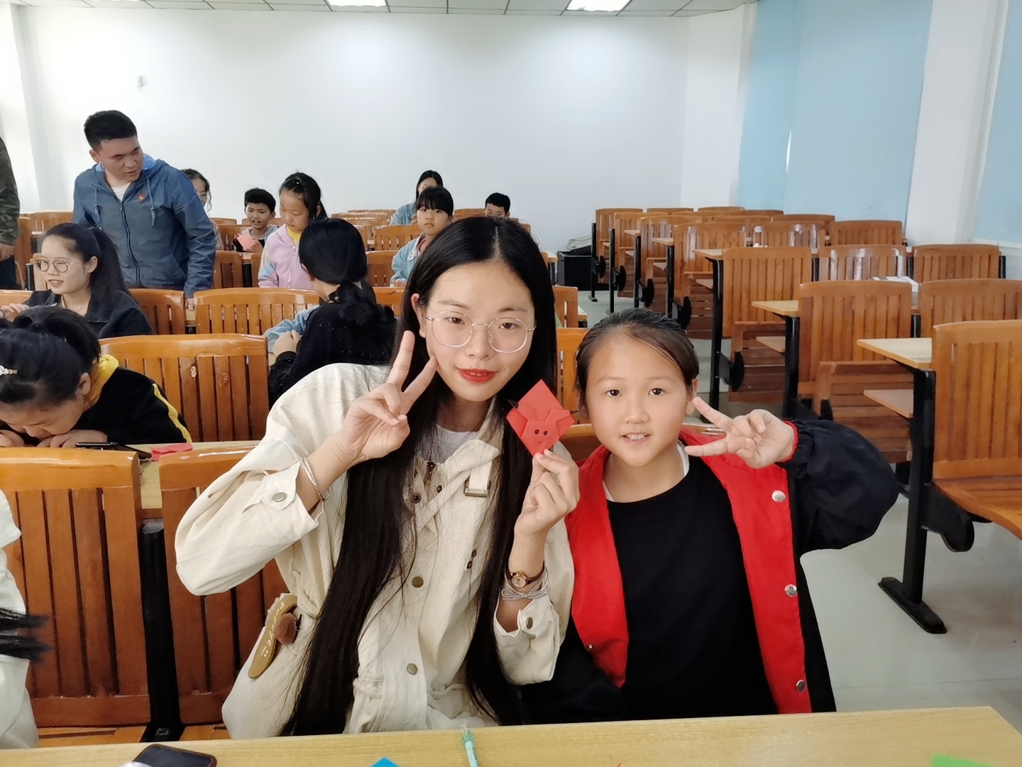 本次活动主要对学校周边的小学生进行“一帮一”帮扶助学活动,辅导他们的功课为主,做手工等娱乐活动为辅。大朋友的教与小朋们的学相结合,双方活动构成动态系统。在教学过程中愉悦的学习氛围使整个活动的成效事半功倍,这样的方式方法还能在潜移默化中塑造孩子健康快乐的成长,不断激发他们的学习兴趣,刺激自主学习的动力。