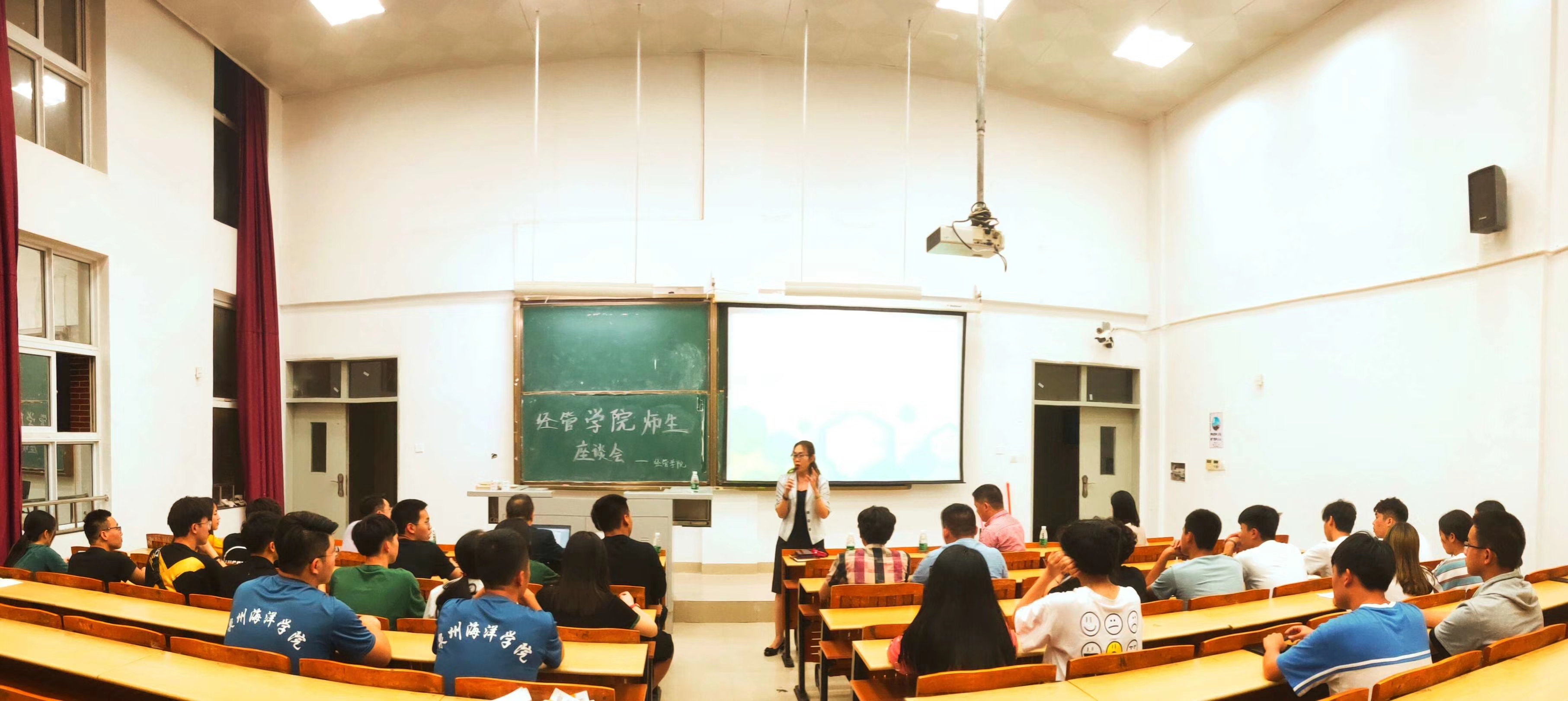 首先由康院长对经管院及自己做了简单的介绍,对经管院接下去的发展做了简单的说明。并激励学生,告诉学生,学习什么时候都不晚,对自己要有自信,要相信自己一定能行。
