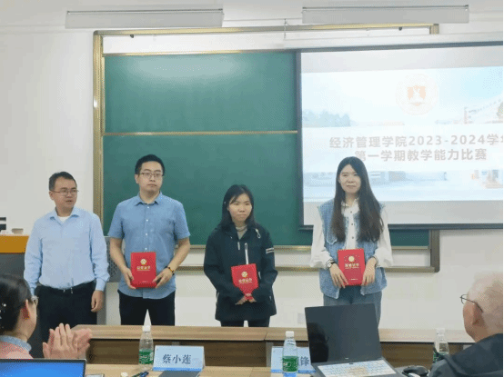 为深化教育教学改革,落实立德树人根本任务,坚持“以赛促教、以赛促学、以赛促改、以赛促研”,全面提升教师综合素质、教学能力和信息化水平,增强教师之间的交流和学习。2023年11月24日,我院在4309教室举办 2023-2024 学年第一学期教师教学能力比赛。教务处蔡小莲处长、督导处李国锋处长、督导处黄演卿副处长、经济管理学院张恒中院长以及黄金帅副院长担任本次比赛评委。比赛由办公室副主任吴婷谊老师主持。
