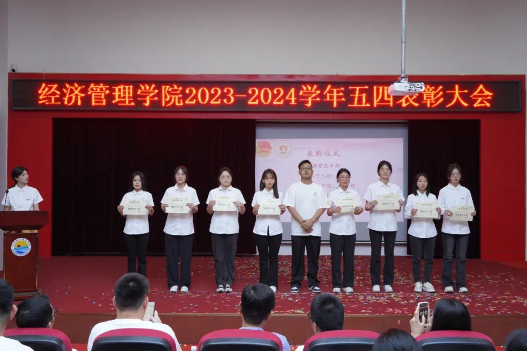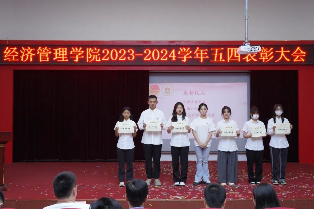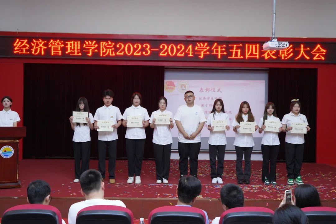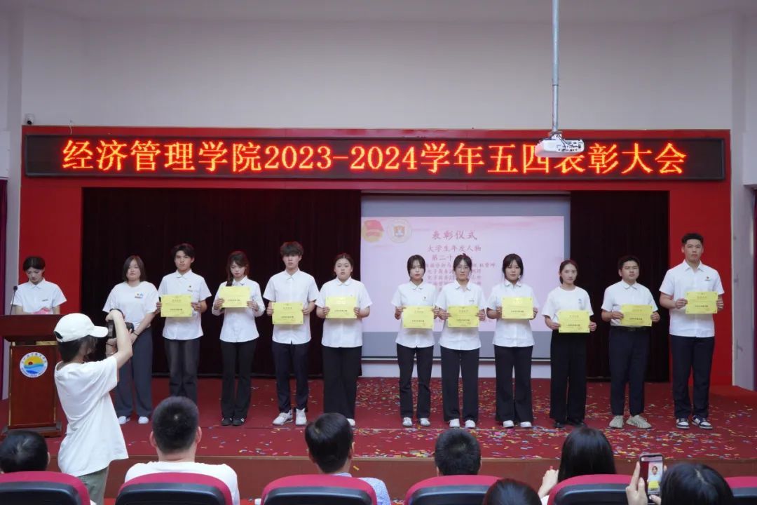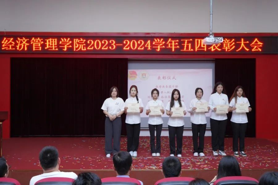 为深入学习贯彻落实习近平总书记关于青年工作的重要思想,纪念五四运动105周年,继承和发扬五四精神,充分发挥先进典型示范引领作用,激励学子比学赶超、创先争优,经济管理学院2023-2024学年五四表彰大会在2204报告厅召开。莅临现场的领导嘉宾有:经济管理学院院长张恒中教授、党支部副书记林钊、团委书记肖伟强及全体辅导员,会议由范慧芝同学主持。