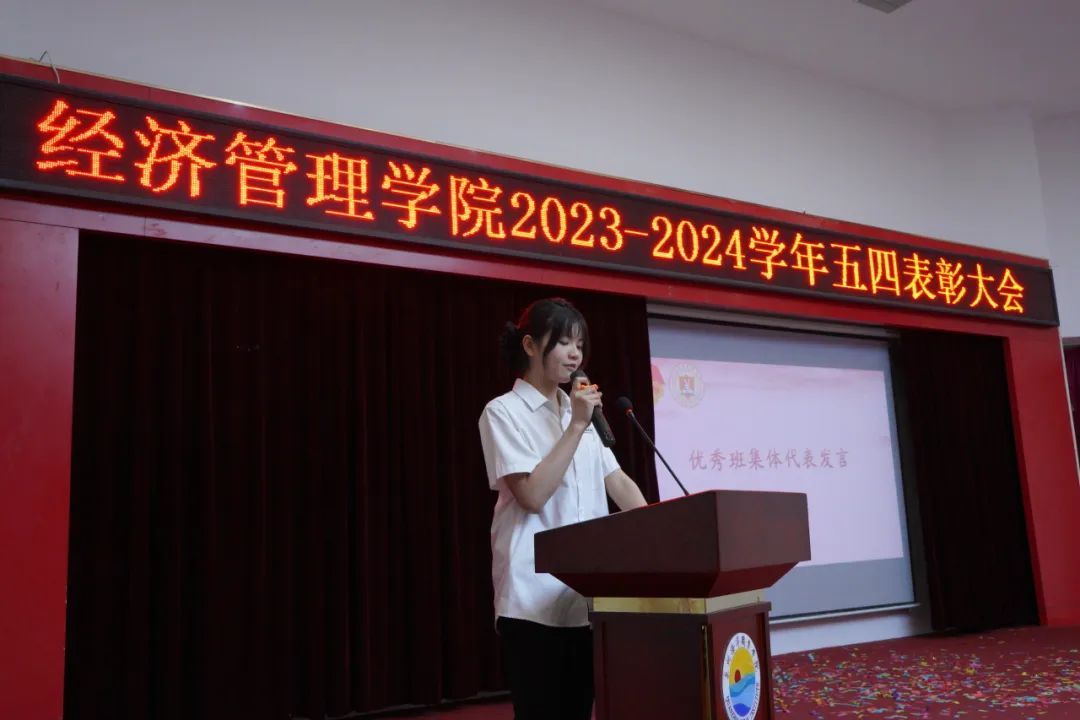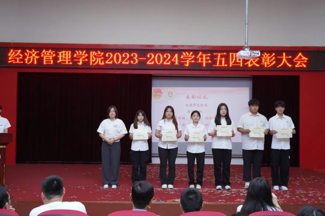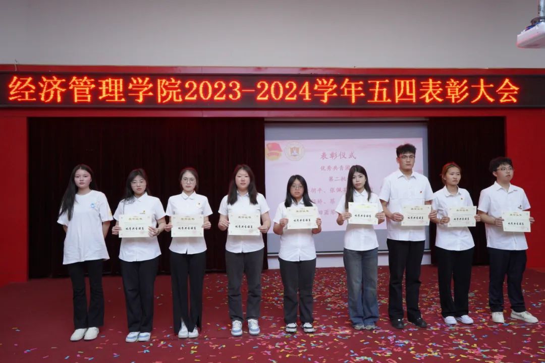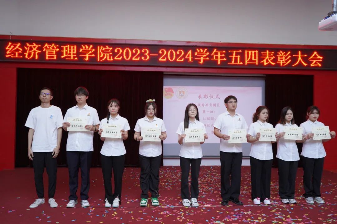 为深入学习贯彻落实习近平总书记关于青年工作的重要思想,纪念五四运动105周年,继承和发扬五四精神,充分发挥先进典型示范引领作用,激励学子比学赶超、创先争优,经济管理学院2023-2024学年五四表彰大会在2204报告厅召开。莅临现场的领导嘉宾有:经济管理学院院长张恒中教授、党支部副书记林钊、团委书记肖伟强及全体辅导员,会议由范慧芝同学主持。