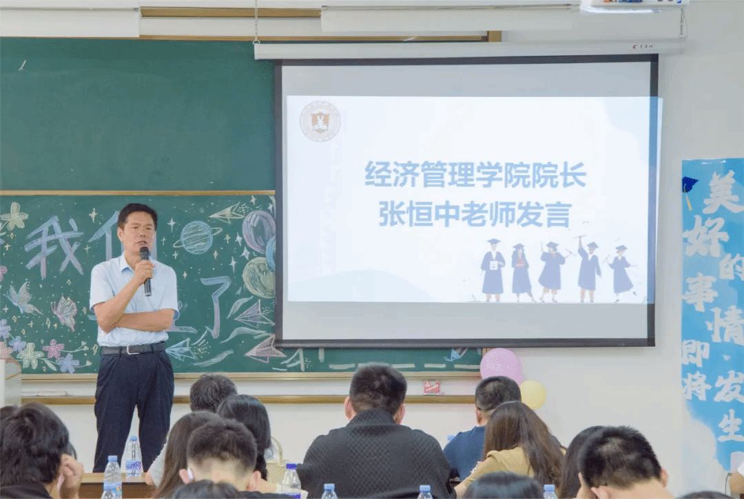 张恒中院长首先代表学院向即将毕业的同学们表示热烈的祝贺,他提到,同学们在校期间不仅学到了专业知识,还参与各种活动、认识了许多优秀师生,为大学生活留下美好回忆。进入人生新阶段,他鼓励毕业生们要继续保持积极向上的精神风貌,不断学习,不断进步,勇攀高峰。