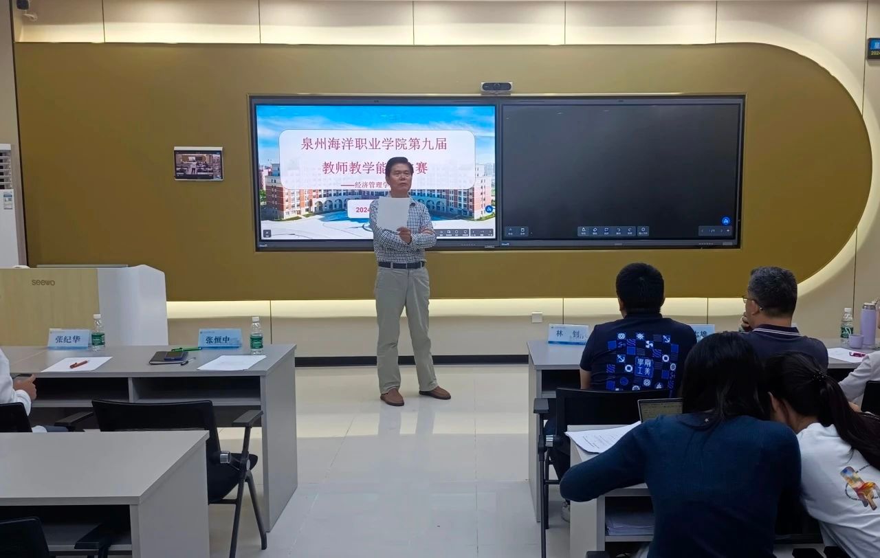 为深入贯彻落实习近平新时代中国特色社会主义思想和党的二十大精神,落实全国教育大会和教育部等八部门印发《新时代基础教育强师计划》要求,进一步提升我院青年教师的综合素质和教育教学能力,我院于10月21日在教学实验楼智慧教室举办了“2024年第九届教师教学能力比赛经济管理学院院赛”。院长张恒中、党支部书记林钊、副院长张纪华、以及专任教师吴志雄、张增华、吴丽清、林燕梅老师担任本次比赛的评委。比赛由办公室副主任吴婷谊老师主持。