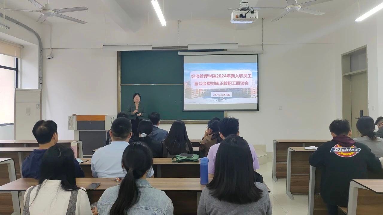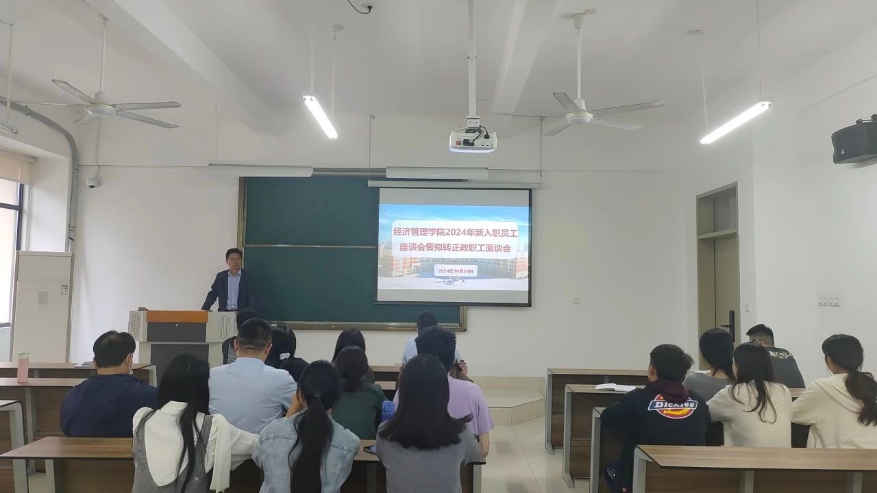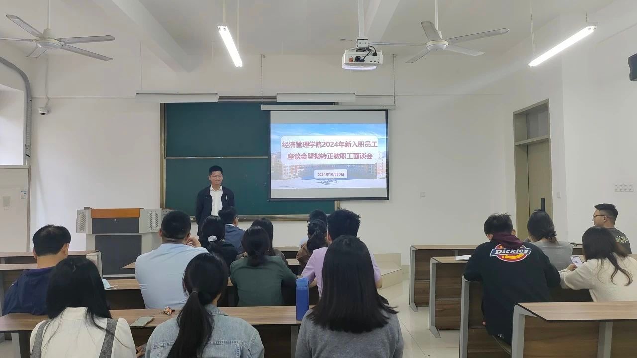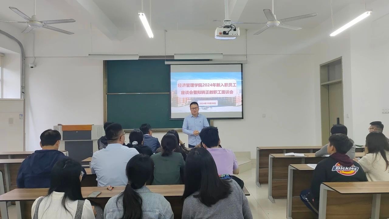10月30日下午,我院在3205召开2024年新进教职工座谈会暨拟转正教职工面谈会,会议由张恒中院长主持,院党支部书记林钊、副院长张纪华及2024年全体新进教职工参会。