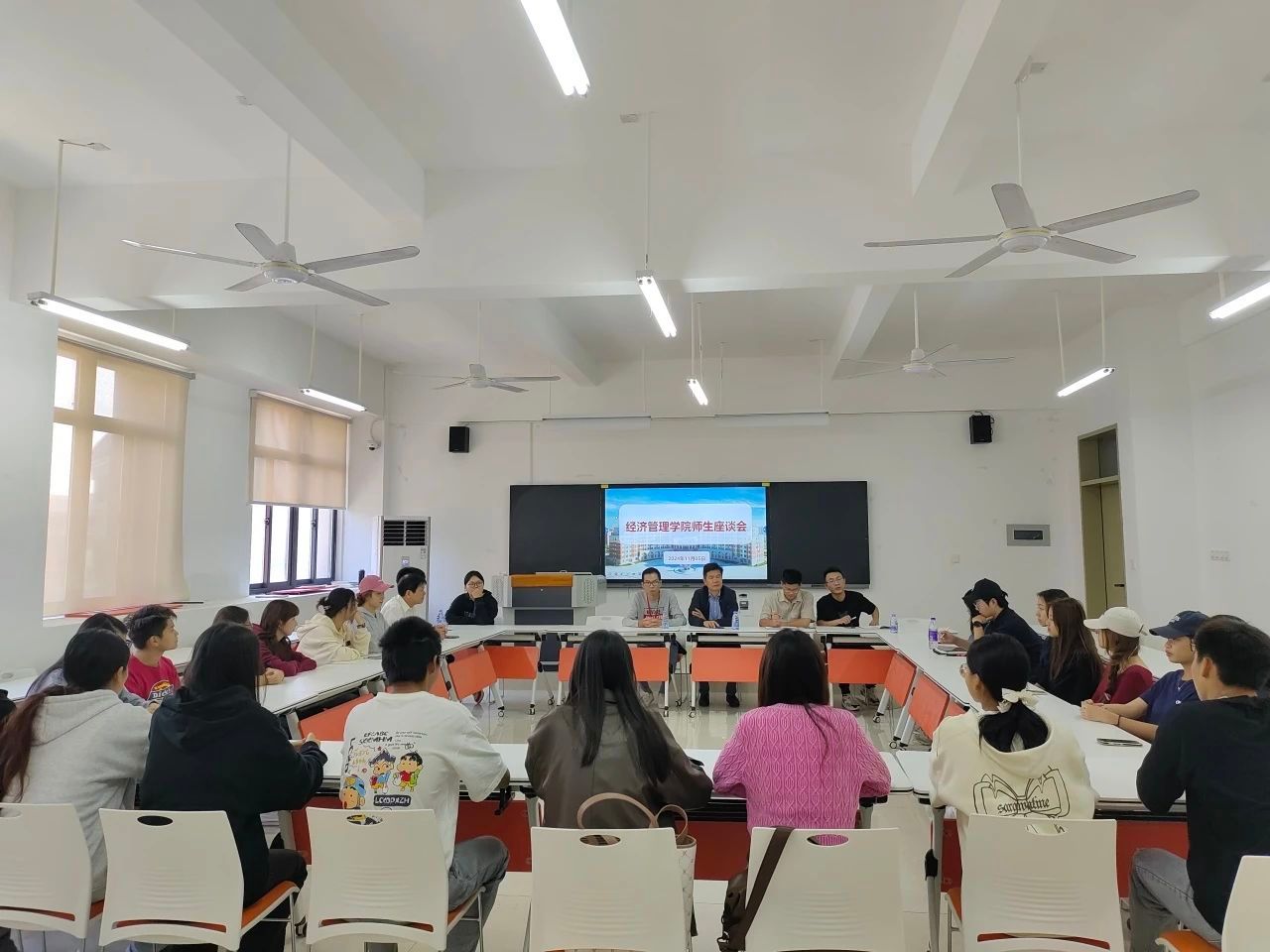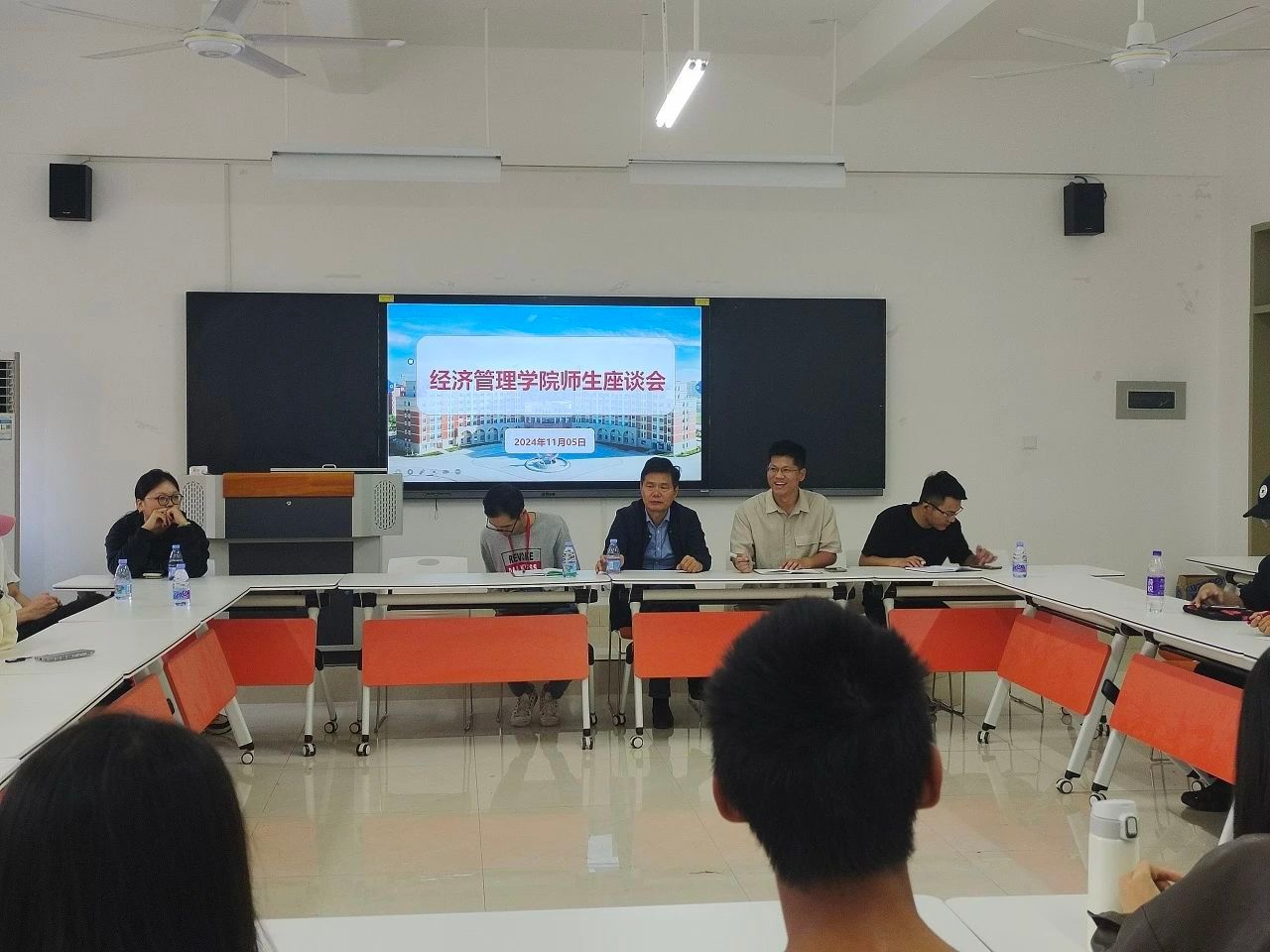 为深入了解师生的思想动态,聆听师生的心声,推动我院优良学风建设,经济管理学院于11月5日在3404教室举行了师生座谈会。院长张恒中、副院长张纪华、党支部副书记吴钊淳以及各专业教师代表、辅导员代表和学生代表参加了本次座谈会。