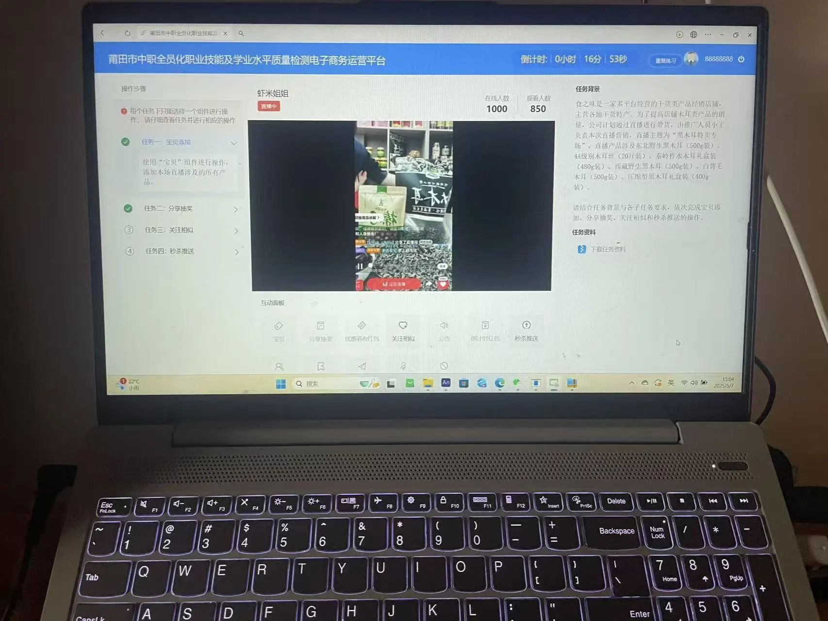 电子商务赛项模拟真实运营场景,设置客服答疑、网店运营、直播互动等项目,聚焦商品运营与视觉营销核心技能,全面提升学生职业能力。客服组以专业话术快速响应“客户”咨询,运营组实时分析数据优化页面。面对模拟促销流量暴增,团队迅速启动预案稳定运营。在高强度多任务挑战中,既锤炼了抗压与沟通能力,又强化了职业素养,充分展现出复合型电商人才的协作与应变风采。