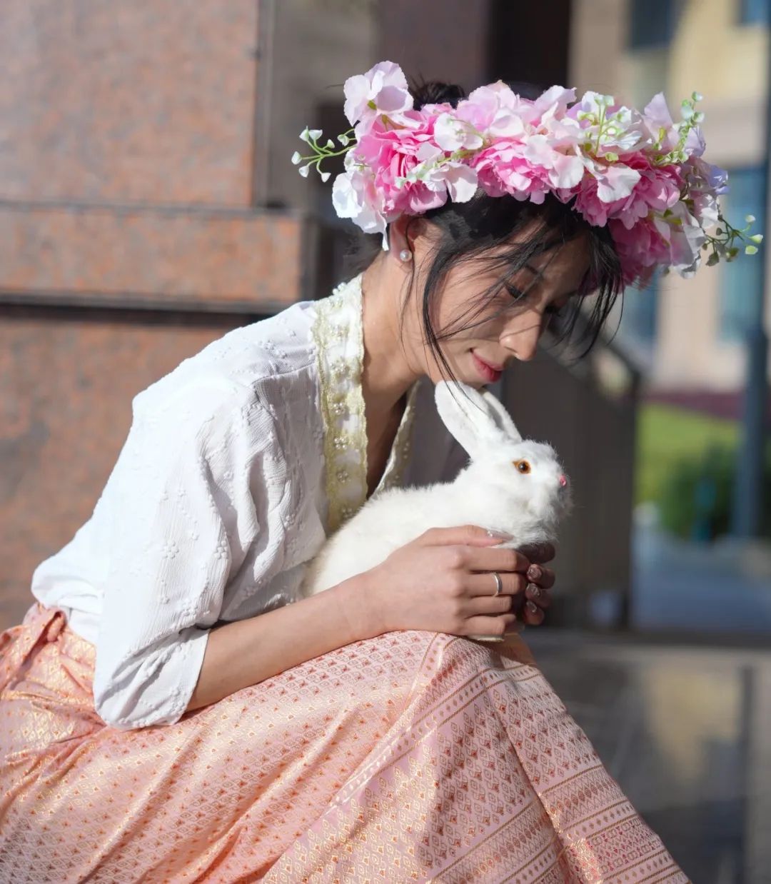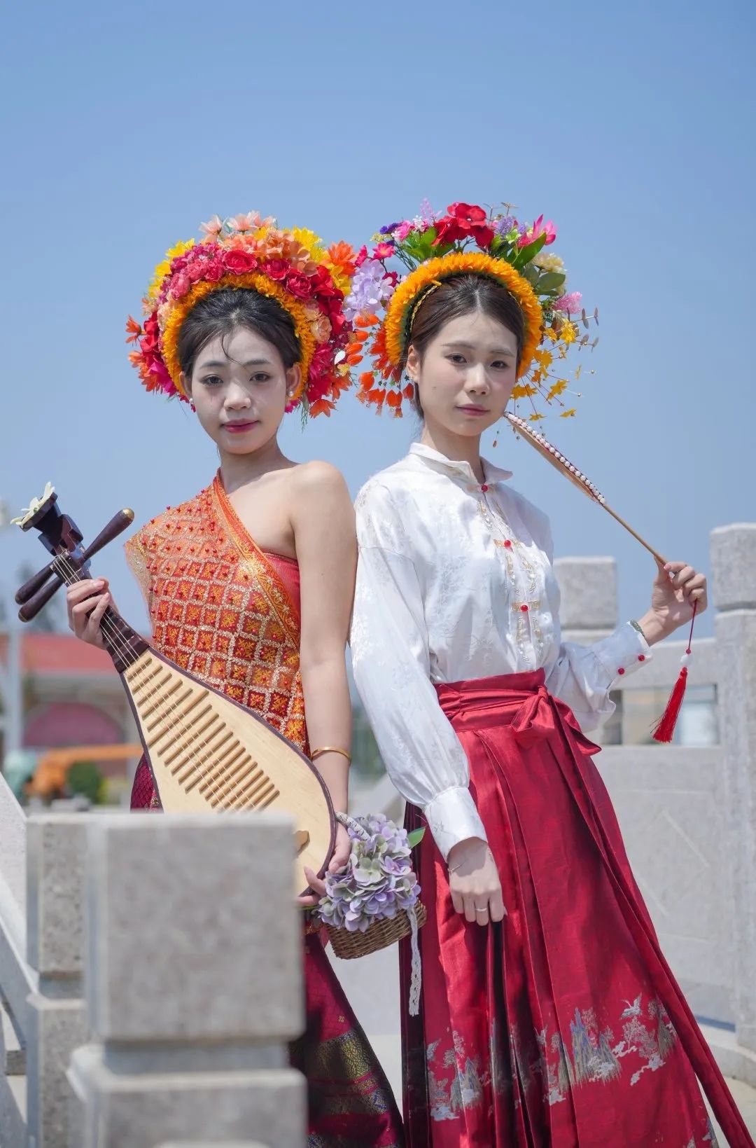 紧接着,在工作人员的编织下,一朵朵精美的花朵巧妙地插在发间,展现出别样的风采。