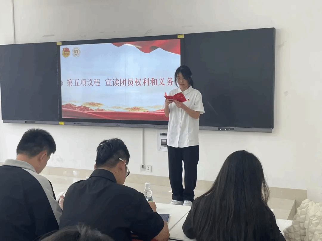 经济管理学院团委组织部成员张韵君同学宣读团员权利与义务。让新团员更加深刻地认识到成为共青团员的责任,并在今后的学习与生活中以更高的标准要求自己,起到先锋模范作用。