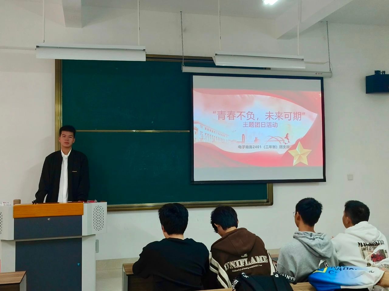 每位同学积极踊跃上台与大家分享自己的心愿,有的是日进斗金、有的是教书育人、有的是平平安安。2024年接近尾声,电商2401(二年制)团支部在此也祝各位同学的愿望能实现。