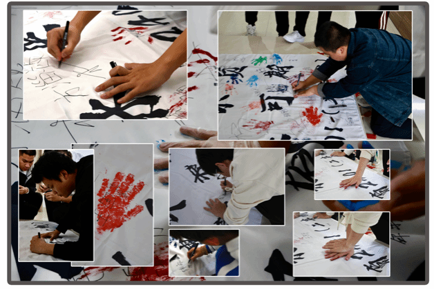 大家一起来创作,在制作完成后,每位同学挑了自己喜欢的颜色纷纷在旗帜上记录着这一时刻。