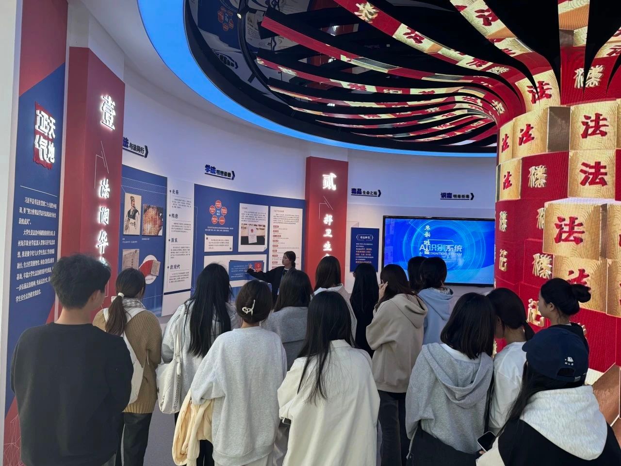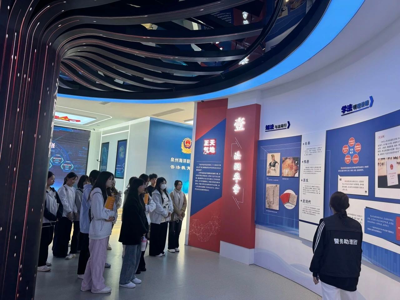 为了让同学们更加深入了解宪法知识,团支书带领大家走进了学校普法馆。踏入普法馆,庄严而神圣的氛围扑面而来。在讲解员的引领下,同学们步入宪法知识的浩瀚海洋。