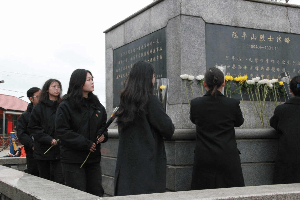 活动伊始,全体人员整齐列队,肃立于烈士纪念碑前,共同聆听学院团委书记石怡,回顾陈平山烈士为革命事业英勇献身的光辉事迹。她号召青年学子要以先烈为榜样,坚定理想信念,勇担时代使命。随后,学生代表缓步上前敬献花束,全体成员默哀三分钟,深切表达对先烈的追思与敬仰。