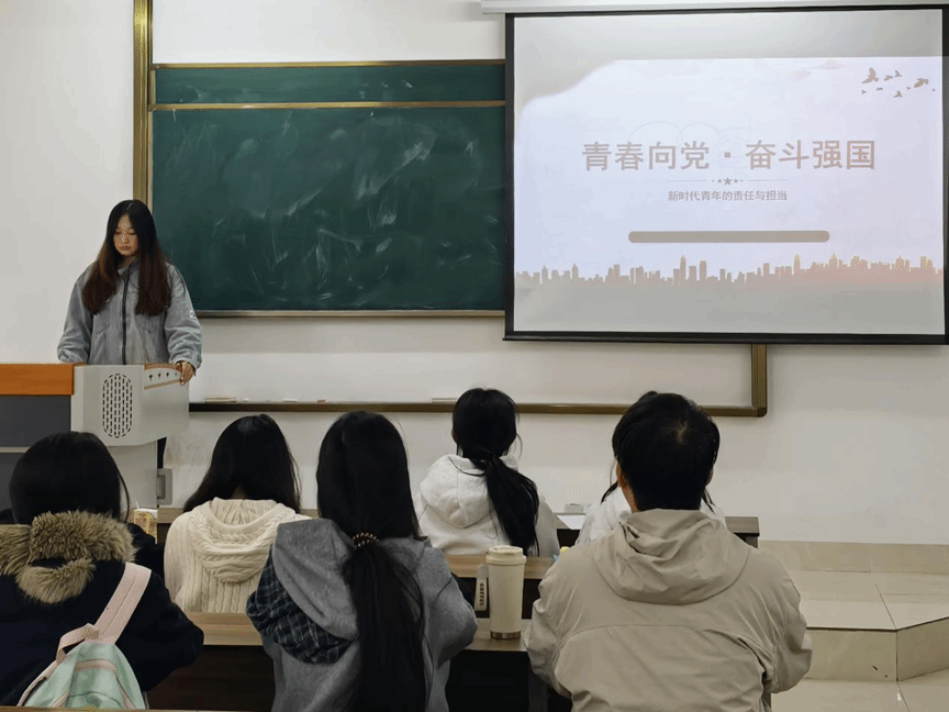 活动伊始,团支部书记陈佳丽全面总结近期支部工作。她从理论学习实效、组织生活规范、团员参与度等方面,系统梳理工作成效与现存短板,并对下一阶段重点任务作出清晰部署。陈佳丽强调,全体团员要坚定听党话、跟党走的政治信念,在学习、生活与团务实践中主动发挥先锋模范作用,以实干精神为支部建设添砖加瓦。