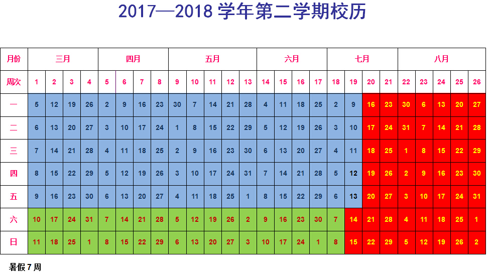 2017——2018学年校历